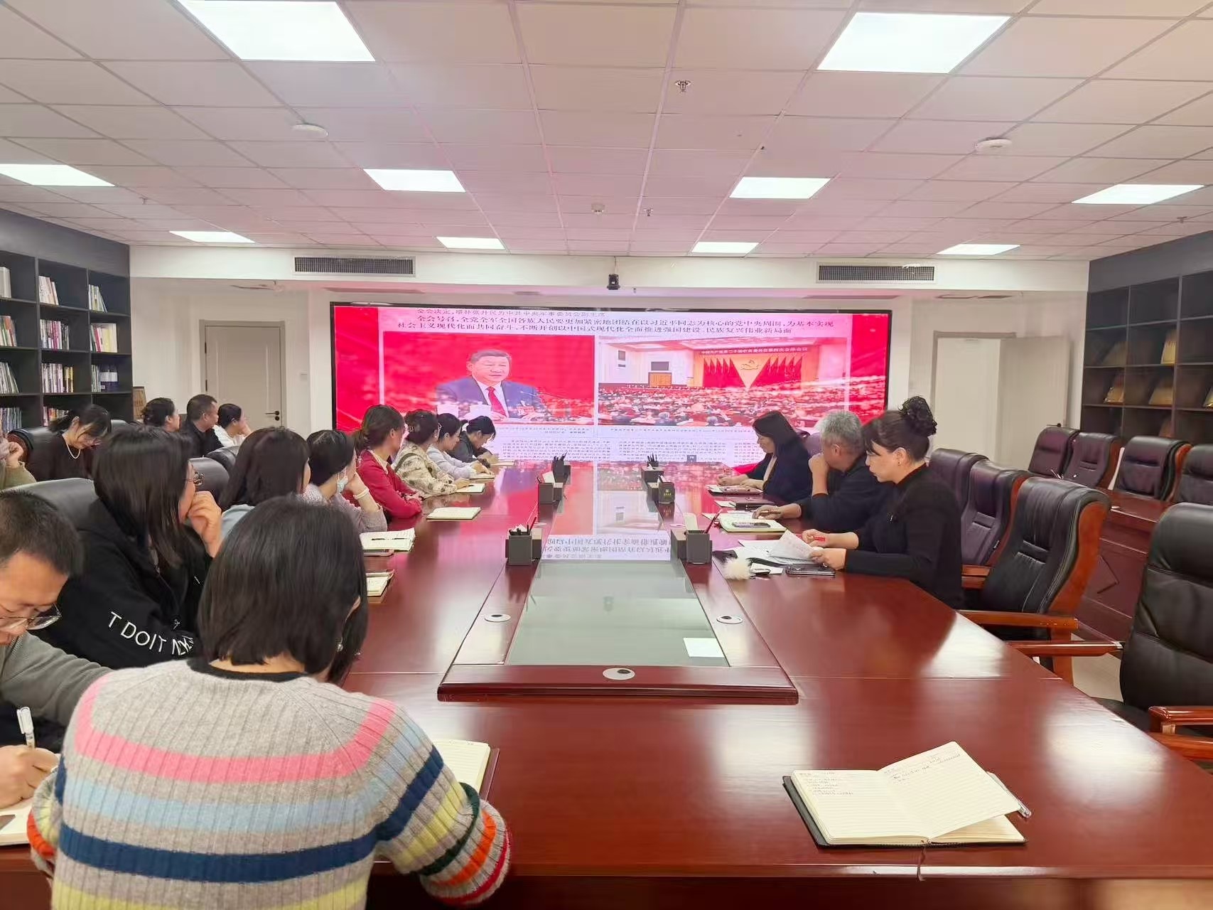 会议伊始,按照学校组织部统一安排,全体教职工首先进行1月主题党日专题学习。大家通过书面研读与视频学习相结合的方式,深入领会党的二十届四中全会精神,深刻把握其核心要义和实践要求,明确要以全会精神为引领,推动财务工作提质增效、守正创新。随后,会议传达学习12月27日自治区党委十三届十二次全会精神,组织观看自治区政府党组会议相关视频,直观了解自治区政府系统对全会精神的贯彻落实举措,引导全体教职工立足财务岗位,主动对接区域发展需求,强化责任担当。同时,支部已将全部理论学习材料发至处室工作群,方便大家开展“线上线下联动+集体自学互补”的延伸学习。